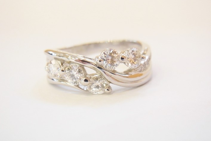 ダイヤ一文字デザインのリングリフォームをお預かりしました。