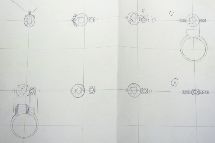 両脇についているダイヤモンドも使用して、お若いお客様にも楽しんで頂けるようなデザインをいくつかご提案しました。