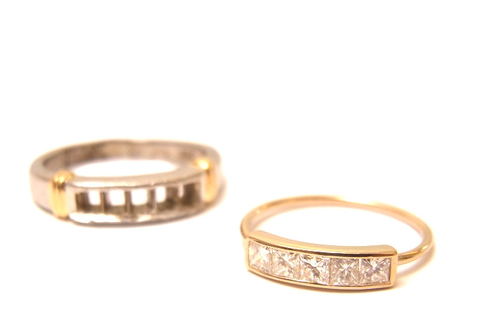 四角いカットのダイヤモンドが一列にあしらわれたリングをシンプルにリフォームしました。