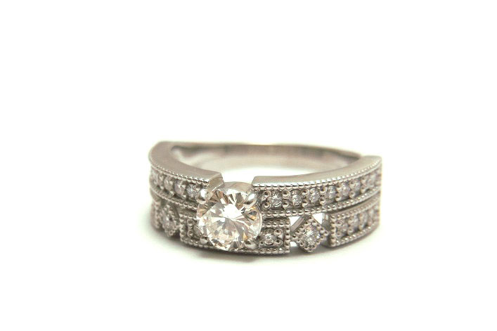 お客様がお持ちのシンプルなダイヤモンドリングを、メレダイヤをあしらったデザインリングへリフォームしました。
