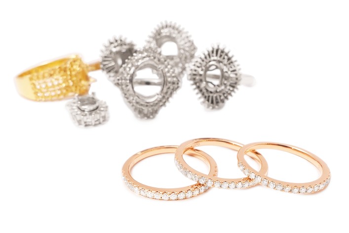 メインストーンを華やかに飾っていた小さいサイズのダイヤモンド。これらを活かして、ダイヤを横一列にセットしたハーフエタニティリングへジュエリーリフォームしました。譲り受けられたジュエリーを、ご家族の皆様にそれぞれお揃いのアイテムに形を変えて、今身に着けやすいアイテムに生まれ変わりました。