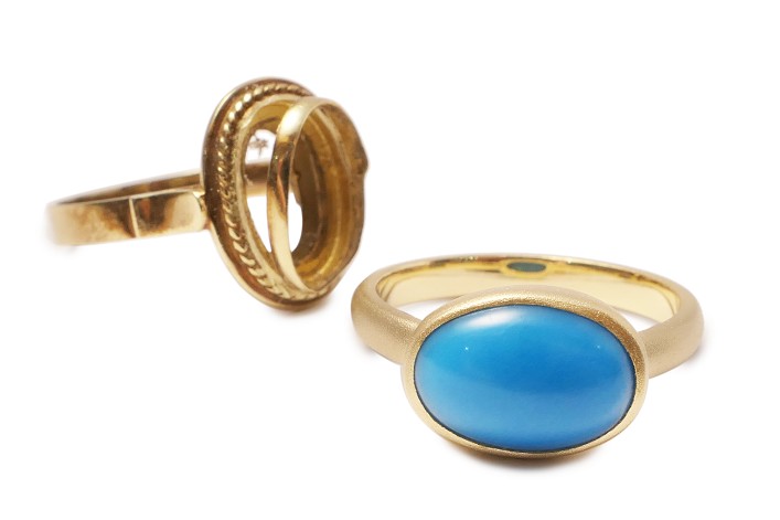 トルコ石リングをフクリン留めリングへジュエリーリフォーム