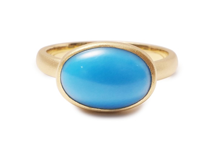 18金の表面にマット加工を施して、トルコ石の色を引き立たせました。