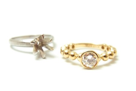2本の立爪デザインリングを使用して、1本のデザインリングへジュエリーリフォーム