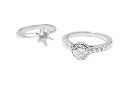 お客様がお持ちの立爪デザインのダイヤモンドリングを、ミルグレインセッティングデザインリングヘジュエリーリフォームしました。