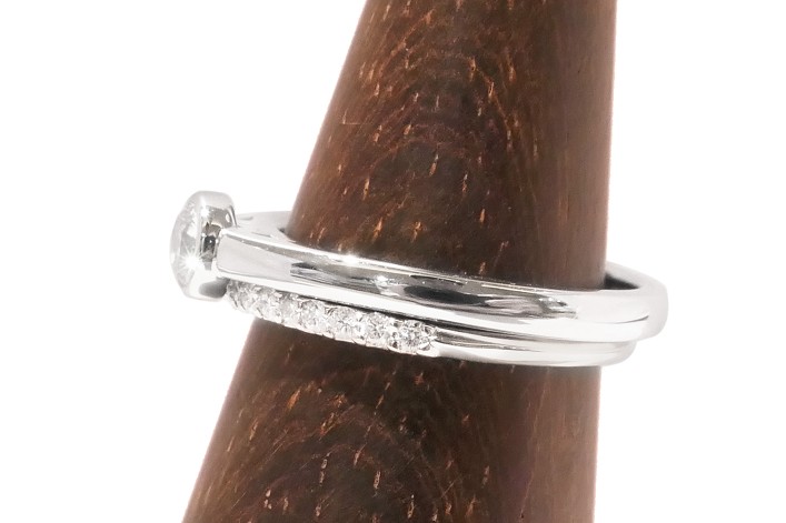 ダイヤモンドリングを重ね付けできるフクリン留めデザインリングへジュエリーリフォーム