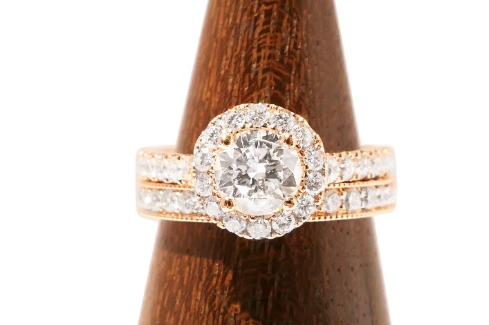 メインストーンのダイヤモンドを使用して、ヘイローデザインリングへジュエリーリフォームしました。