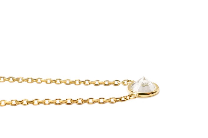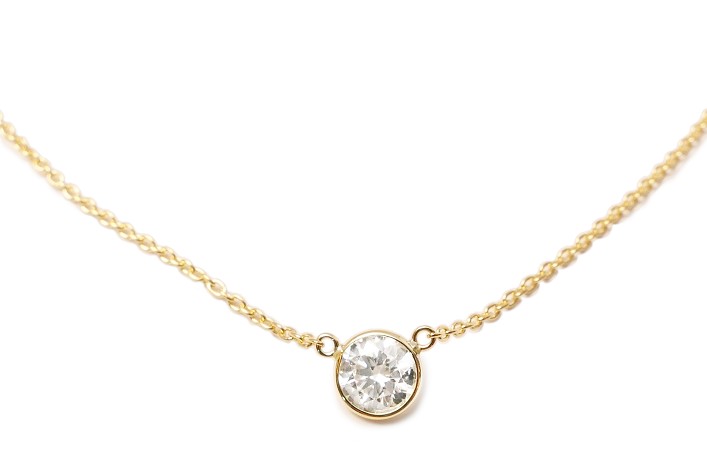 お客様がお持ちのダイヤモンドリングを、ダイヤの縁を地金で覆うベゼルセッティングネックレスへジュエリーリメイクしました。