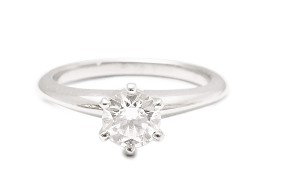 プラチナアームに一粒のダイヤがセットされたシンプルな指輪は、フォーマルな雰囲気も感じられます。