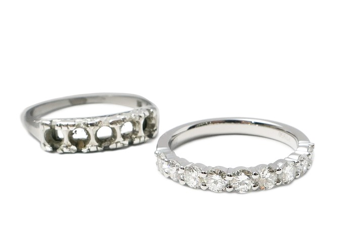 お客様がお持ちのダイヤモンド一文字リングを、ハーフエタニティリングへジュエリーリメイクしました。