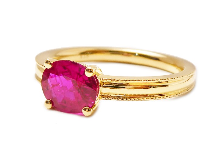 ルビーは縦向きから横向きにセットして4本の爪でシンプルにお仕立てしました。