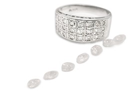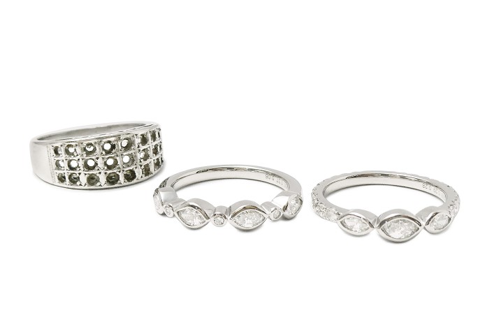 お持ち込みのダイヤモンドルースとダイヤモンドリングを使用して、2本のハーフエタニティリングへジュエリーリフォーム