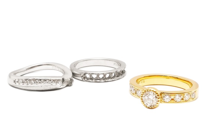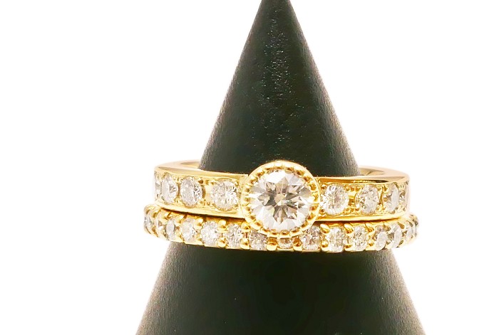 ダイヤモンドリングを重ね付けできるミル留めリングへジュエリーリフォーム