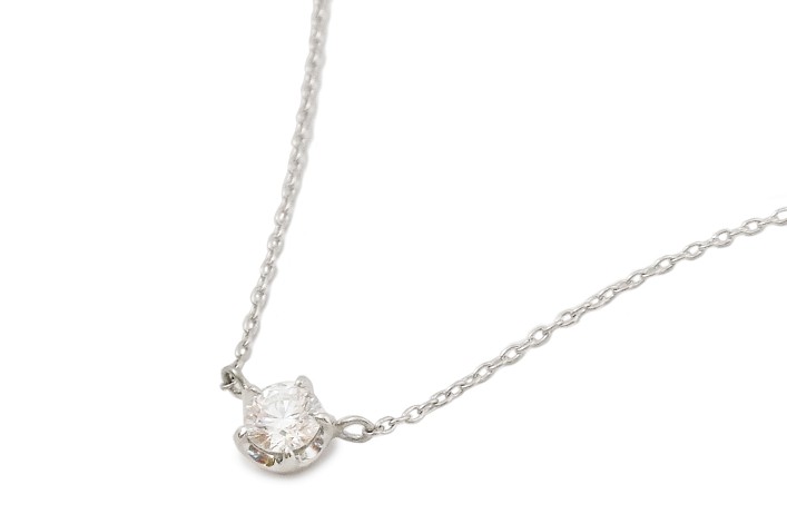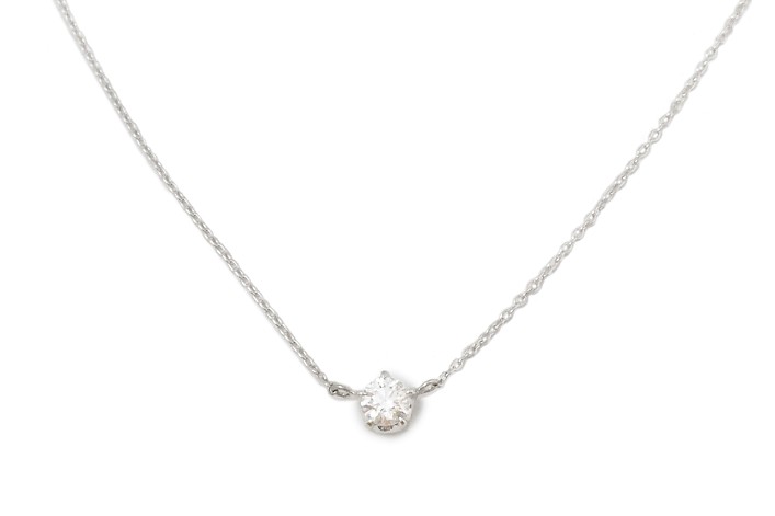 ダイヤモンドを繊細な爪でセットし、チェーンを直接取り付けて吊るすように仕立てました。