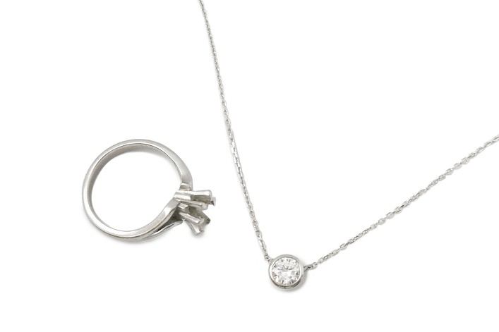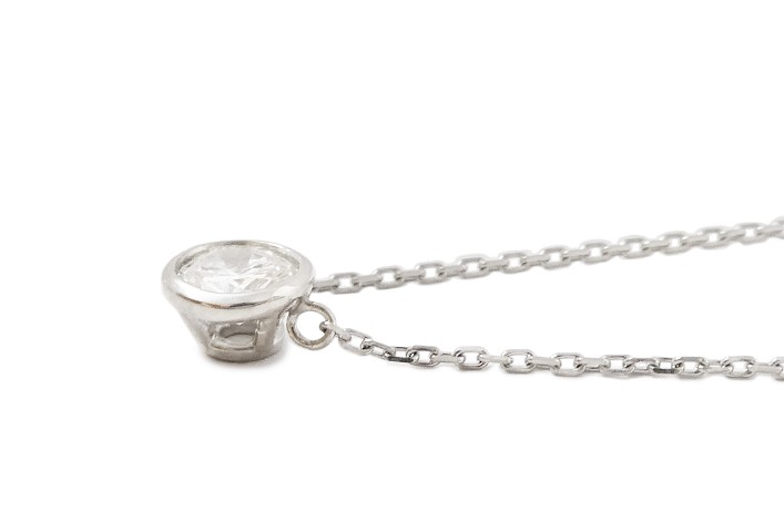 お客様がお持ちのダイヤモンドリングを、シンプルなネックレスへジュエリーリフォームしました。
