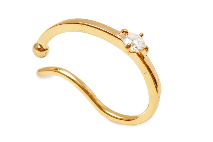 ご自分にとってお好みの着け心地のイヤーカフをお持ちのお客様。それを参考にさせていただき、同じ隙間を設けて18金で作成しました。