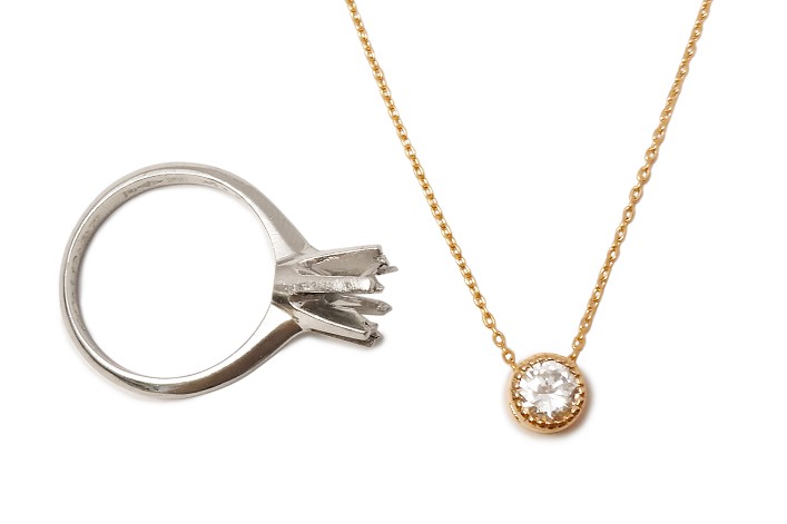 立爪ダイヤモンドリングを、ミルグレインセッティングネックレスへジュエリーリフォーム