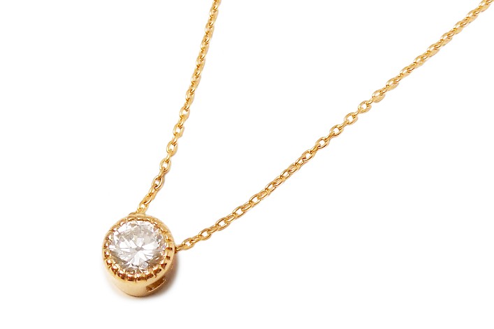 お客様がお持ちの立爪ダイヤモンドリングを、ミルグレインセッティングデザインのネックレスへジュエリーリメイクしました。