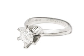 立爪デザインのダイヤモンドリングは、当時婚約指輪として主流だったデザインです。今では爪が大きく高さがあって、フォーマルな印象が強く、普段身につけにくいとジュエリーリフォームのご相談が多いデザインの一つです。