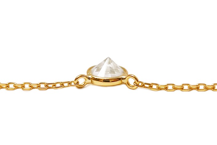 このダイヤモンドを使用して、ベゼルセッティングペンダントへジュエリーリメイクしました。ダイヤモンドのエッジを地金で覆うシンプルなセッティングです。ダイヤモンドのとがった面がお肌の上でコロコロと転がるたびに、ダイヤモンドがキラリと輝きます。