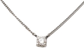 お客様がお持ちのダイヤモンドネックレスは、4本の爪でセットされ、プラチナの喜平チェーンで吊されたデザインネックレスです。