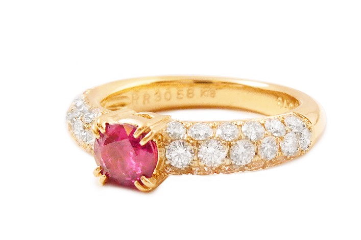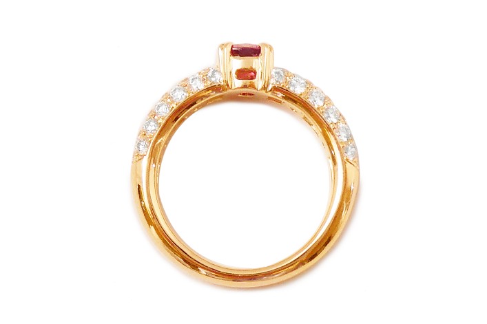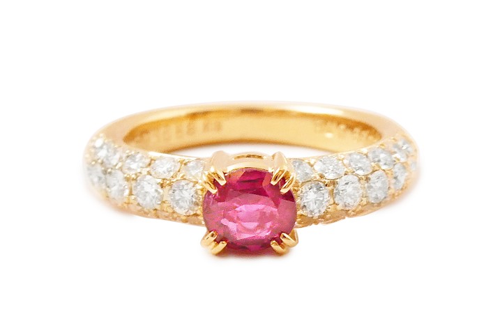このルビーを使用して、18金でパヴェデザインリングにジュエリーリフォームされることに。