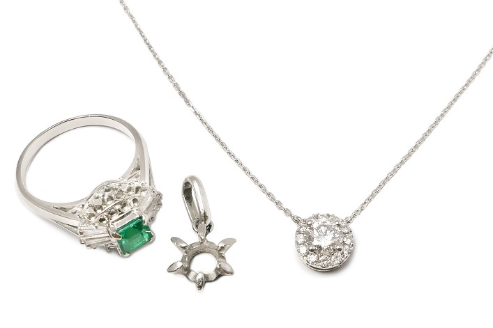 お客様がお持ちの立爪台やペンダントやエメラルドリングにセットされたメレダイヤを使用して、ヘイローデザインネックレスへジュエリーリフォームしました。