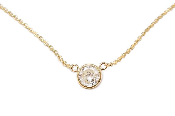 お客様がお持ちの4本の爪でセットされたダイヤモンドネックレスを、ダイヤの縁を地金で覆うベゼルセッティングネックレスへジュエリーリフォームしました。