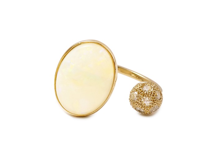 オパールをフクリン留めでセットして、メレダイヤはバヴェデザインになるよう埋め込みようにセッティングしました。