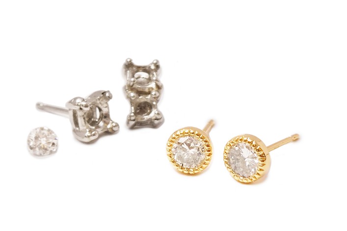 ダイヤモンドジュエリーを、ミルグレインセッティングピアスへジュエリーリフォーム