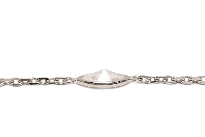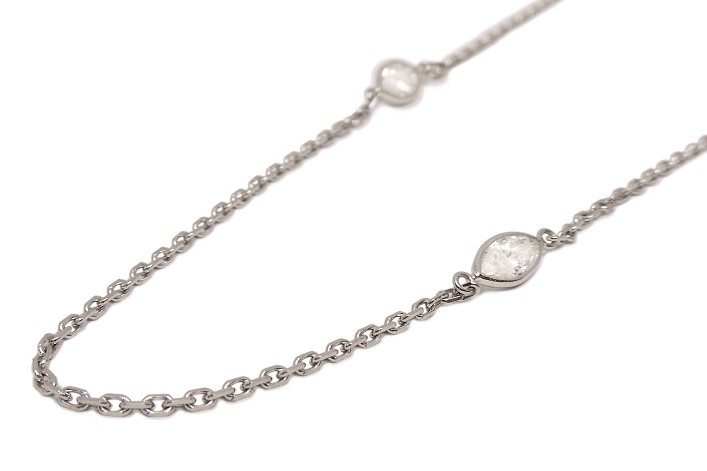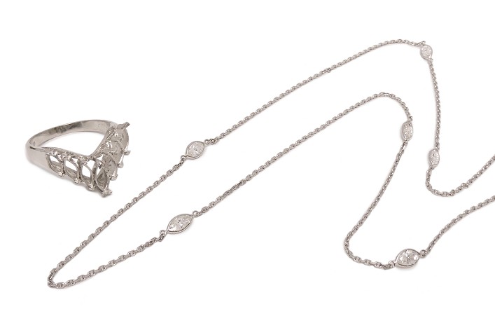 今回は、このリングにセットされたマーキスカットのダイヤモンドを活かして、ステーションネックレスへジュエリーリフォームされることに。ダイヤモンドの縁を地金で覆い、チェーンにセットしました。