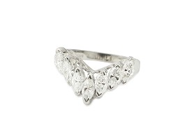 お客様がお持ちのV字デザインと呼ばれるダイヤモンドリングは、立爪デザインのダイヤモンドが流行した時期に重ねて身につけられるようにデザインされています。