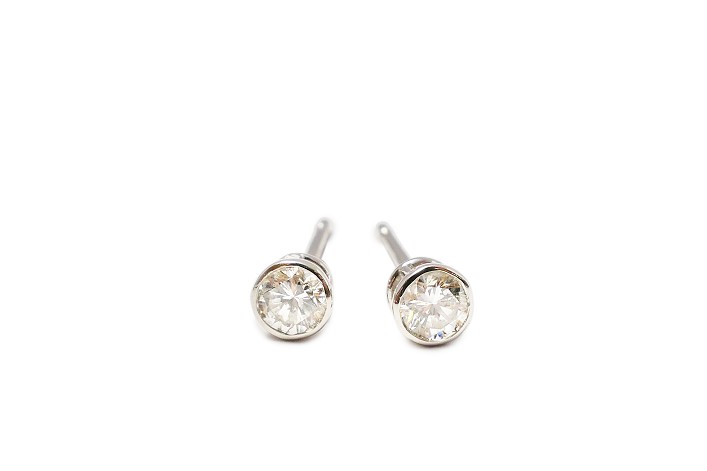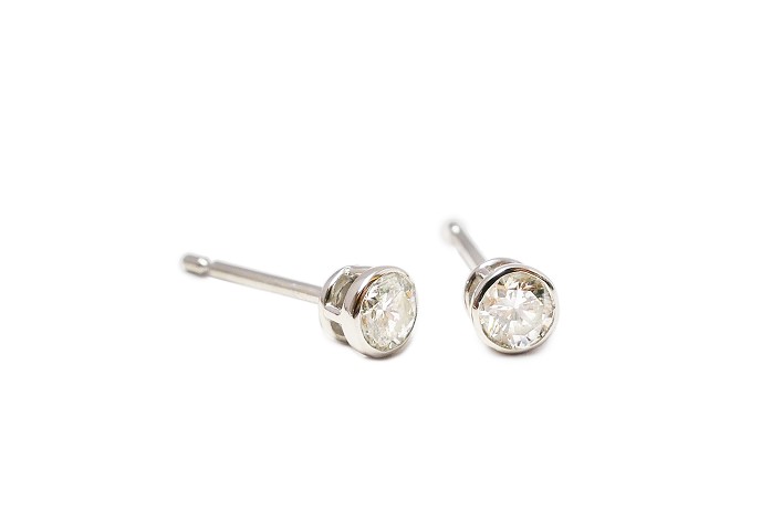 ダイヤの縁をプラチナで覆い、ラウンドカットの輪郭を引き立たせます。