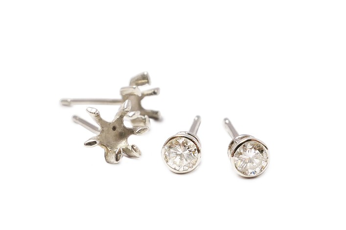 6本爪のダイヤモンドピアスを、フクリン留めデザインピアスへジュエリーリフォーム