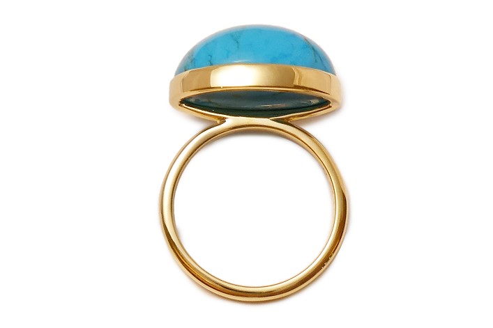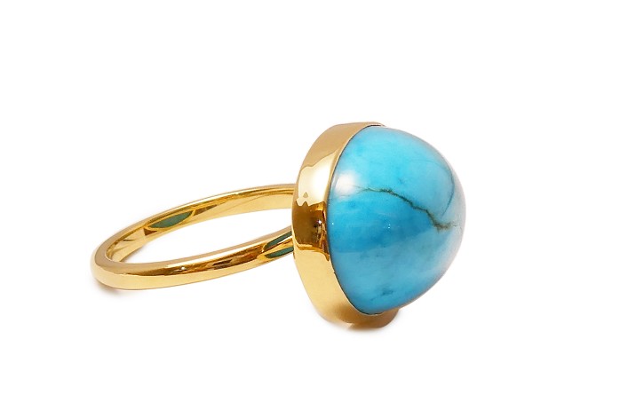 お客様がお持ちのトルコ石ルースを18金でフクリン留めリングに加工しました。