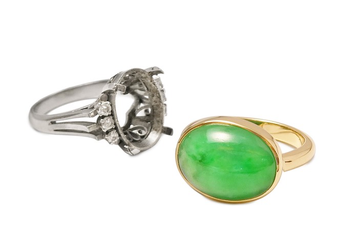 ヒスイリングをフクリン留めデザインリングへジュエリーリフォーム