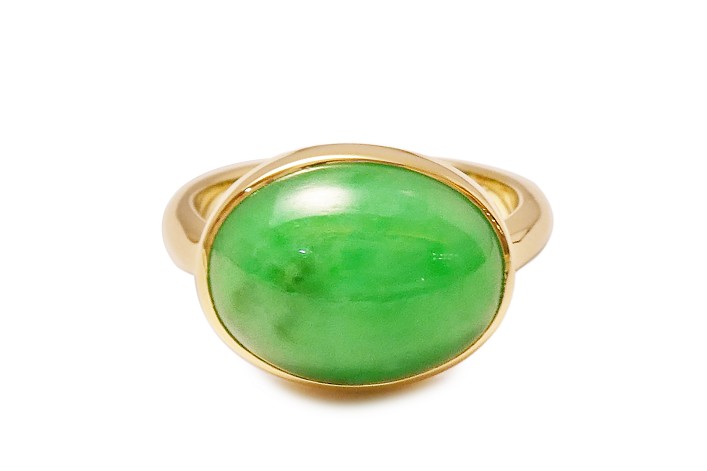 4本の爪でセットされたヒスイリングをお持ちのお客様。少しクラシカルな印象で身につける機会が少ないとのことでジュエリーリフォームされることに。