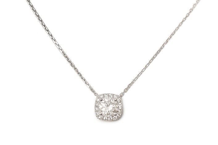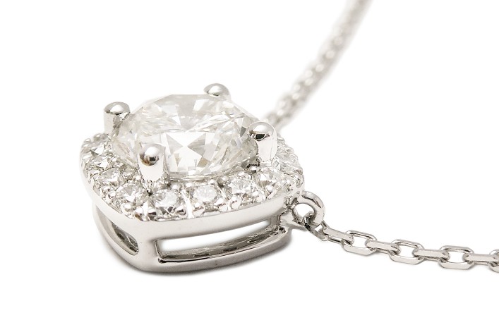 お客様がお持ちのダイヤモンドペンダントを、スクエアモチーフのヘイローデザインネックレスへジュエリーリメイクしました。