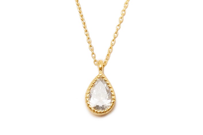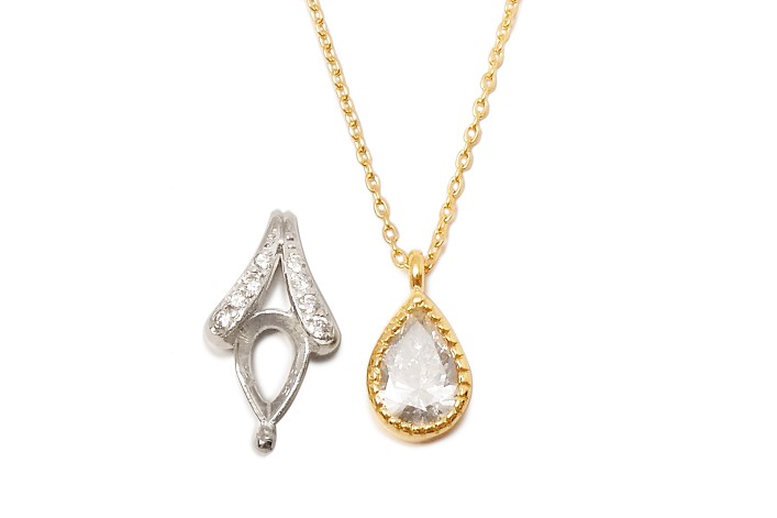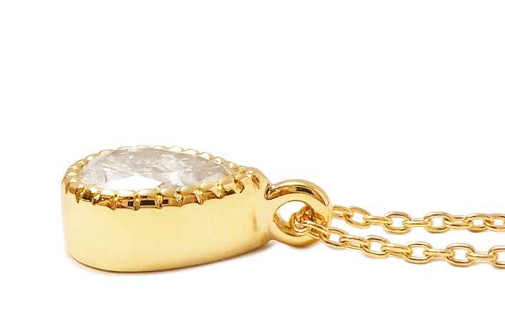 お持ちのお持ちのペアシェイプカットダイヤモンドネックレスを、ミルグレインセッティングデザインにジュエリーリフォームしました。