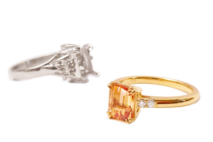 プラチナで仕立てられたカラーストーンリングを、18金イエローゴールドでジュエリーリフォームしました。