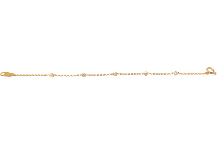 お客様がお持ちのリングにセットされた5ピースのダイヤモンドを使用して、ステーションブレスレットへジュエリーリフォームしました。