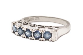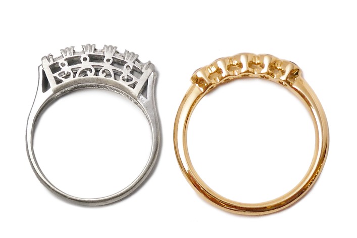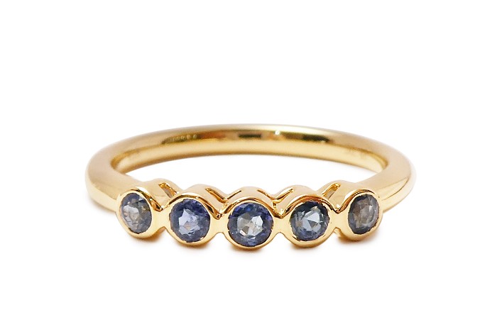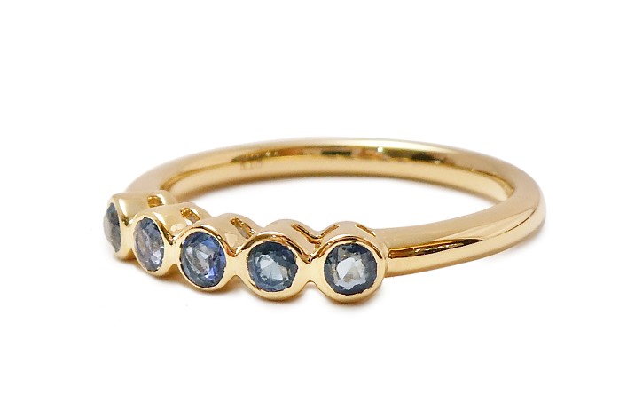 お客様がお持ちの一文字リングはラウンドカットされたサファイヤが横一列にセットされています。爪がしっかりとしていて高さのあるデザインで、普段身につけにくいとご相談いただきました。