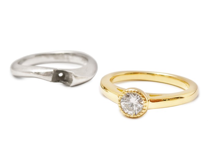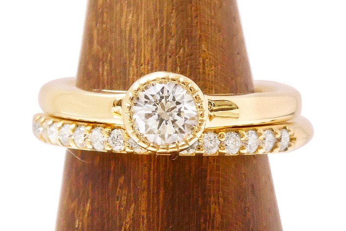 ダイヤモンドリングを重ね付け出来るミルグレインセッティングリングへジュエリーリフォーム
