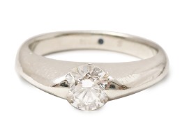 18金でダイヤの縁を包み、ダイヤ側面が裸になるよう仕立てました。