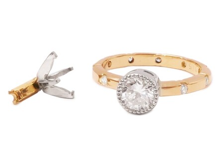 立爪ダイヤモンドリングを、重ね付けできるミル留めデザインリングへジュエリーリフォーム