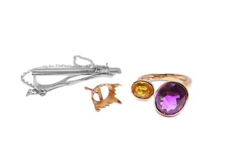 タイバーとタイピンにセットされたジュエリーを、フォークデザインリングヘリフォーム