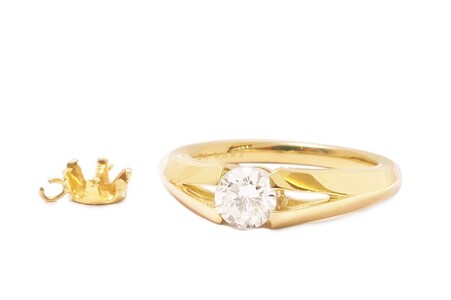 お客様がお持ちのダイヤモンドリングを、18金イエローゴールドのフクリン留めリングヘジュエリーリメイクしました。