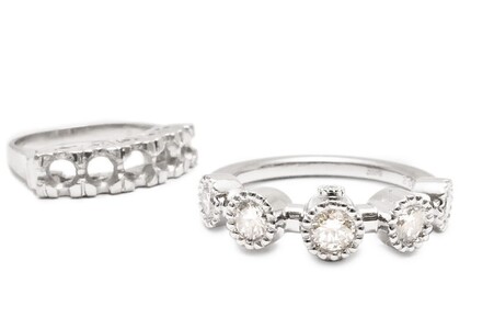 お客様がお持ちのダイヤモンドリングを、重ね付けできるミルグレインセッティングリングへジュエリーリメイクしました。