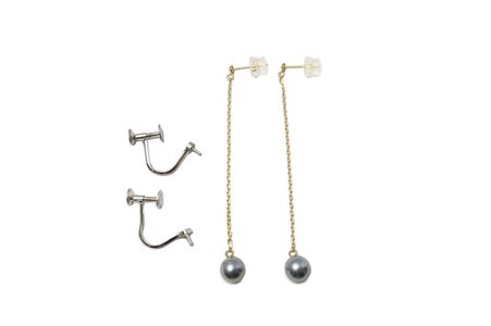 タイバーやタイピンにセットされたパールを、ピアスとピアスキャッチへリフォーム