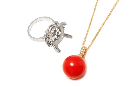 お客様がお持ちのサンゴリングをペンダントへジュエリーリフォームしました。